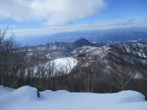 | 展望所から鈴ヶ岳。浅間は半分雲に隠れていました。 | 皇海から日光連山。これを眺めながら風を避けてランチ。 |
