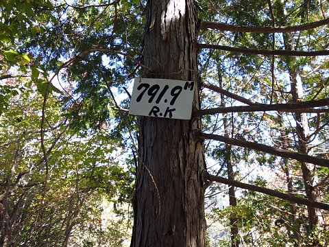 RK氏の標高板。こんなマイナーな山まで歩かれているとは。 ゆっくりと腰を落ち着かせて長いランチタイムとする。 |