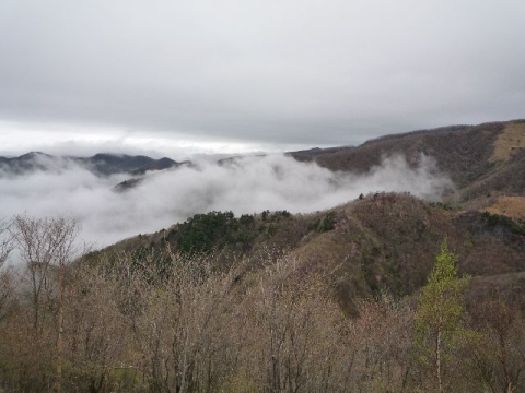 | 遠望は雲一色、近い山々も雲に埋もれての図です。