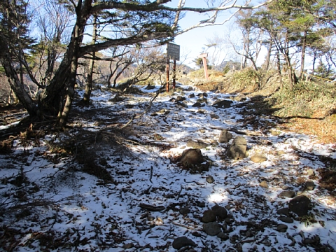 | いっそのことここを右に行って二子山もいいかなぁ等とも考えた。 | 日陰にうっすらと雪があるだけ。 |