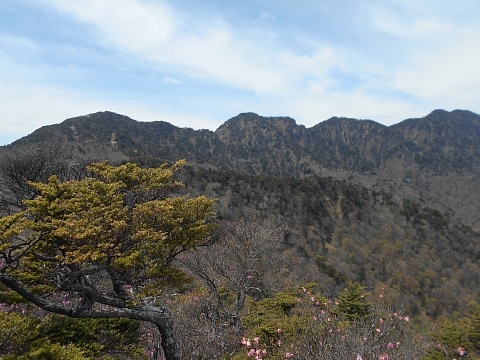 | そして五葉躑躅。シロヤシオですね。 | 笹原から袈裟丸山。今日はあそこまで行けるかしらん。 |
