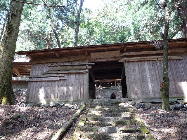 ここから石段(170段あるらしい)を登ります。 この手前が駐車場となっており、5〜6台は駐車可能です。 この日は我々の1台だけでした。 また、登山中大きなキジのような鳥以外誰にも会いませんでした。 |