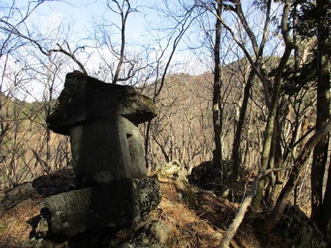 江戸中期の苔むした石祠を見ながら古道であった山道を辿れます。
