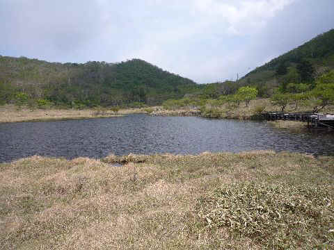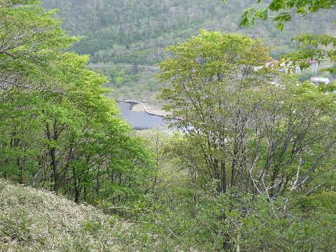 | 下山途中の一角で覚満淵の一部が見えました。 | 駒ヶ岳登山口に到着です。 |