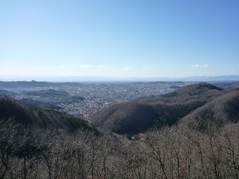 | 森山展望台に到着。 | 市内が見渡せるが枝が少し邪魔かな。隣の一色展望台に移る。 |