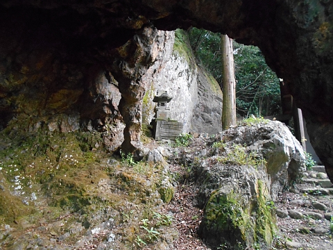| 岩をくりぬいた先には八王子神社。 | 神社の裏手から岩神山に登ります。 最初は急ですが、途中にはこのような踏み跡が有りましたよ。 |