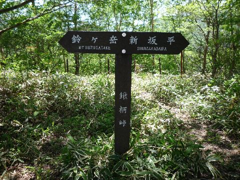 | 新坂平の駐車場に車を止めて、道路反対側の鈴ケ岳登山口へ向かいます。
