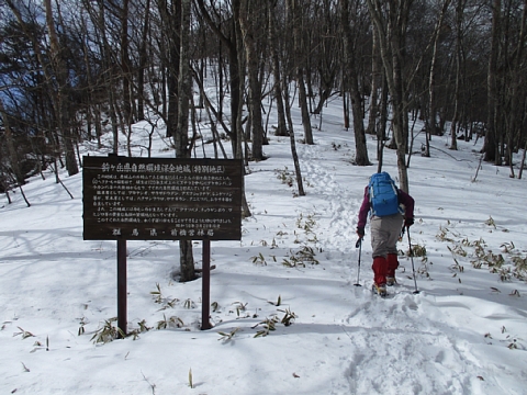 | ワカンはザックにしまって出発です。 | 鍬柄山から赤城6峰を望む。黒檜、駒ケ岳。 |