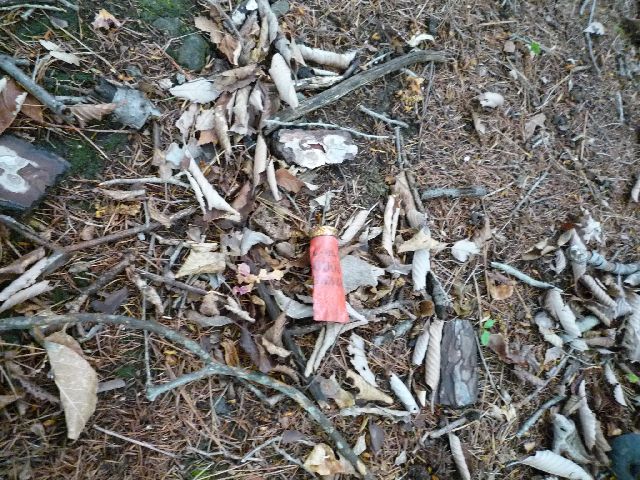 | 枯れ葉と枯れ枝と鹿の糞しかない地面に何か目立つ者を発見。