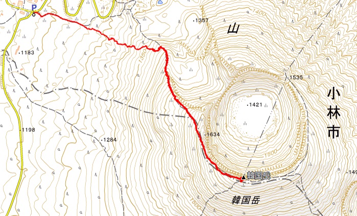 【コース】 えびの高原駐車場〜3,4,5,6,7,8,9合目〜韓国岳 (往復)
